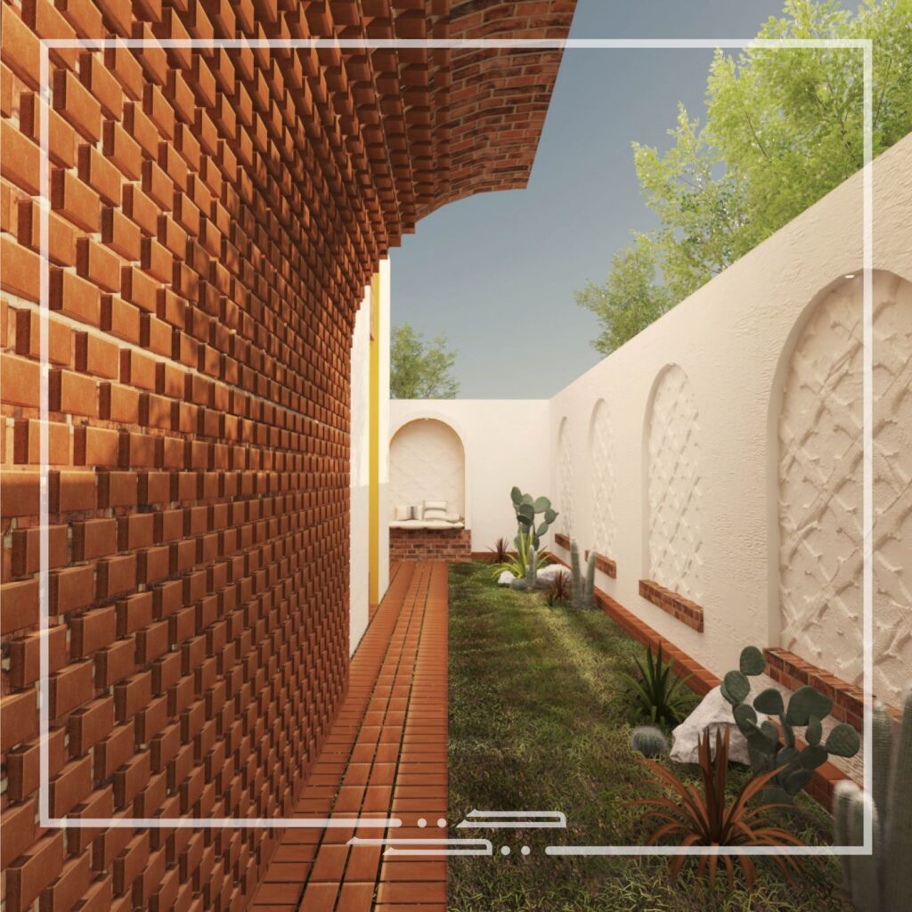 This project features a contrasting combination of fired bricks with white plaster walls, which gives the usually dull idea of a low-cost home a captivating twist. Brick provides ample insulation for the home, keeping the interior temperature stable regardless of the time of year, saving plenty of energy and costs of electricity for cooling and heating. On the other hand, the interior finishings have been designed with costs in mind, using mainly raw materials such as concrete and wood, with modular furnishings.