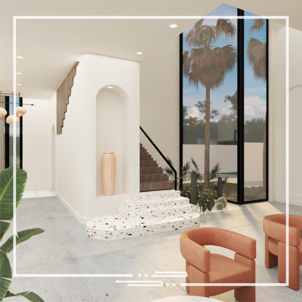 A design that embodies modernity with a blend of different earthy materials creating a composition that’s sophisticated and lively. The exterior of the house is humble with neutral tones and clean-cut details, the interior however has a charm with hints of bright colors and the fusion of wood and terrazzo in the finishings creates a very unique atmosphere.