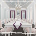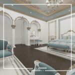 This interior was inspired by palatial style interiors, which differs from the conventional classic style in the aspect of the different colors that are used and the excessive small patterns and details on the walls and ceilings.
